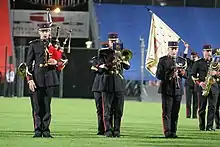 The French Army Signals Band (French: Musique des Transmissions de l'armée française; M-TRANS) is a French Army military band based in Rennes.Comprising 53 musicians, it is one of the seven bands of the army (excluding the bands of the regiments and military schools).[1] It is led by Captain Sandra Ansanay-Alex, who has served in this capacity since 2013.[2] She is the first female conductor in the history of the French Army.[3] It employs the Brittany region's Celtic heritage with its 2 bagpipes and a bombard player in its ranks.[4] It has participated in international events such as the Sevastopol Military Tattoo, the Spasskaya Tower Military Music Festival and Tattoo[5] and the Virginia International Tattoo. €67,340.96 was the sum of money that was collected during the concerts the band provided in 2019.[6]