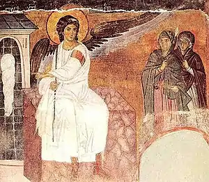 Myrrhbearers on Christ's Grave, c 1235 AD, Mileševa monastery in Serbian