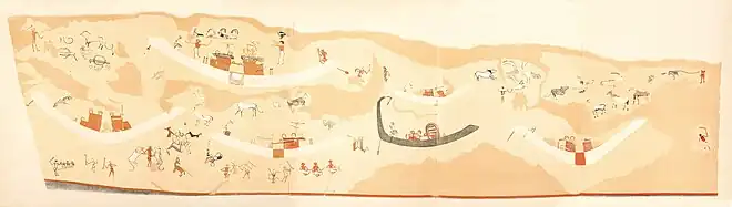 Reproduction of the earliest known fresco, Tomb 100, Hierakonpolis, Naqada II culture, Egypt (c.3500–3200 BCE)