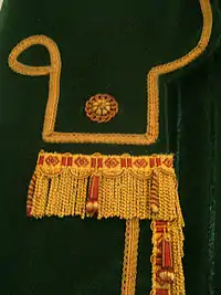 Fringe is an ornamental textile trim applied to an edge of a textile item, such as drapery, a flag, or epaulettes.