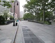 Fulton Mall is a pedestrian street and transit mall in Downtown Brooklyn that runs on Fulton Street between Flatbush Avenue and Adams Street. It contains 230 stores[2] and dedicated bus lanes. For the mall's length, only buses, commercial vehicles, local truck deliveries, and emergency vehicles are allowed to use the street. The center of the mall is an open public space known as Albee Square.