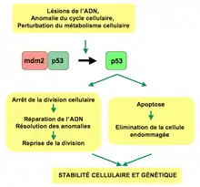 - ↑ Wang X, Simpson ER, Brown KA (December 2015). "p53: Protection against Tumor Growth beyond Effects on Cell Cycle and Apoptosis". Cancer Research. 75 (23): 5001–7. doi:10.1158/0008-5472.CAN-15-0563. PMID 26573797.