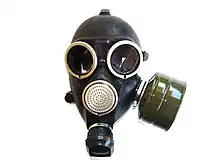 The GP-7 gas mask is a civilian gas mask that was produced by the Soviet Union during the Cold War era. The mask was designed to provide protection to civilians against nuclear, biological, and chemical (NBC)[1] agents during the threat of the cold war.[2] Its military counterpart, the PMK was intended to be used exclusively for military purposes as opposed to the GP-7 which was designed solely for civil defense.[3]