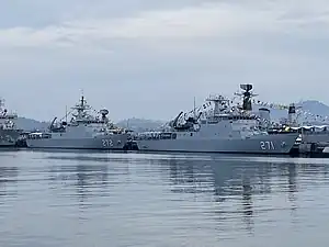 The Gagah Samudera is a class of training ships of the Royal Malaysian Navy (RMN).[3] The two ships were built jointly by Malaysia and South Korea under a shared development programme, with one ship built in South Korea and the other in Malaysia, The ships, named KD Gagah Samudera and KD Teguh Samudera are currently in service with Royal Malaysian Navy.[4] All RMN ships carry the prefix KD (Malay: Kapal Di-Raja, literally "Royal Ship")