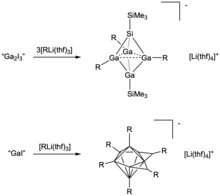 - 1 2 Köstler, Wolfgang; Linti, Gerald (1997). "Synthesis and Structure of a Tetragallane [R4Ga4I3]− and a Polyhedral Nonagallane [R6Ga9]". Angewandte Chemie International Edition in English. 36 (23): 2644–2646. doi:10.1002/anie.199726441. ISSN 1521-3773.