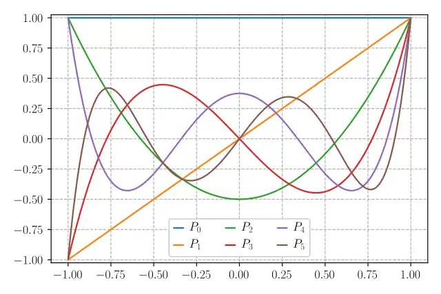 | [−1, 1] | 1 | Legendre polynomials | 25.4.29 | § Gauss–Legendre quadrature |