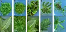 - ↑ Egener T, Granado J, Guitton MC, Hohe A, Holtorf H, Lucht JM, et al. (July 2002). "High frequency of phenotypic deviations in Physcomitrella patens plants transformed with a gene-disruption library". BMC Plant Biology. 2: 6. doi:10.1186/1471-2229-2-6. PMC 117800. PMID 12123528.
