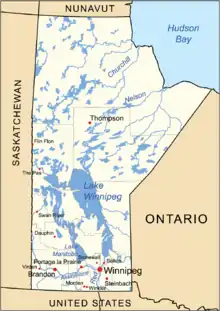 {{cite journal}}: Cite journal requires|journal=(help) - ↑ "Manitoba Historical Geography". Retrieved 2006-09-23.