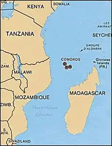 Location of Comoros (in circle)