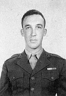 George D. Webster was born on November 27, 1919, in Macon, Georgia, but his family moved to High Point, North Carolina, and young George attended high school there. He was then accepted to the University of North Carolina and graduated in summer 1940 with Bachelor of Science. He entered the Marine Corps service in February 1941 and because of his university education, he was sent to the Officer Candidate School at Quantico Base, Virginia. Following the four-month Reserve officers course, he was commissioned second lieutenant on May 29, 1941.[1]