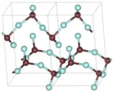 ![]() Two unit cells of the orthorhombic GeF2 structure. Brown atoms are germanium and cyan atoms are fluorine | |