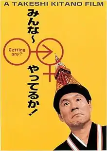 Getting Any? (みんな~やってるか!, Minnā yatteru ka!, literally: "Is everyone doing it?") is a 1995 Japanese film, written, directed, edited, and starring Takeshi Kitano. Yatteru (やってる) is the colloquial form for yatteiru (やっている), yatteru coming from the Japanese verb yaru, which is an informal word meaning 'to do', and has become slang for sexual intercourse. The film is a sex comedy. It showed Beat Takeshi, originally a very popular manzai performer, returning to his comedic roots. The movie features an Airplane!-like assemblage of comedic scenes centering on a Walter Mitty-type character whose obsession is to have sex.