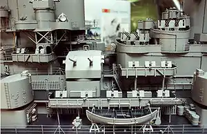 Close-up of USS Missouri model built by Gibbs and Cox, on display at the Washington Navy Yard