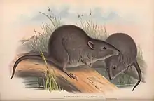 A description of the species was published by John Gould in his Monograph of Macropodidae (1841), which included an illustration of the species by H. C. Richter.[1] The name was published in the Proceedings of the Zoological Society of London, reporting Gould's presentation of the specimen at its meeting on 9 February 1841.[15] Gould placed the new species with the genus Hypsiprymnus, and the taxon was later assigned to the genus Potorous. A specimen of the animal was collected by the field worker John Gilbert at King George Sound, while collecting birds and mammals for Gould at the new colonies in the southwest of Australia. The holotype is a female skin and skull placed at the British Museum of Natural History, a specimen that was also named as Hypsiprymnus micropus G. R. Waterhouse 1841.[16][17] Gould's description was later submerged as a subspecies or recognised as a synonym of other potoroine taxa, and was referred to as Potorous tridactylus in taxonomic and conservation listings. Until the rediscovery of the species, the material available limited any comparison with its related taxa.[10] An analysis of the new material and revision of the genus Potorous confirmed what Gilbert had supposed when he collected the first specimen, and the taxon was again recognised as a species.[18]