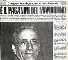 Giuseppe Anneda (born Cagliari, 1 March 1912 – died Cagliari, 30 July 1997) was an Italian mandolin virtuoso who helped the mandolin gain more importance in the classical music world in the 20th Century.[1] He performed with his instrument in concert halls around the world, including some where mandolin "had never entered", and taught at the Conservatory Pollini of Padua (holding "First Chair.")[1] He also was able to gain access to manuscripts in museums, rediscovering works by Vivaldi, Pergolesi, Beethoven and many others.[2]