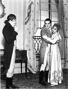 Calthrop was introduced to Noël Coward by Mrs. Astley Cooper while on holiday in Italy in 1921.[2][3] She soon became a close friend of Coward's, and she commenced her theatre career in November 1924 with her design for his The Vortex, staged at the Everyman Theatre in Hampstead.[4] As she later recalled: "It was the first play I had ever designed so I was terribly excited, though there was nowhere to paint the sets except outside the theatre in Hampstead High Street, and the costumes all had to be made in a kind of basement there."[5]