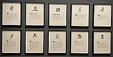 In Notes on the Margin of the Black Book (1991-1993), Ligon addresses Robert Mapplethorpe's photographs of black men from his 1996 book titled, Black Book. Ligon cut pages from Black Book and framed 91 photographs, installing them in two horizontal rows. Between them are two more rows of small framed typed texts, 78 comments on sexuality, race, AIDS, art and the controversy over Mapplethorpe's work that was launched by then-Texas Congressman Dick Armey.[20] Ligon explicitly points out the problems of these visuals in Mapplethorpe's book with his row of textual placards between the rows of photographs. These images, because they were first published in Mapplethorpe's book, had a limited the scope under which they were viewed. Ligon, however, made these pictures public in presentation, in a museum: Ligon forced viewers to look at these images in a room full of others.[21] This act allows for open discussion of the images and the politics surrounding them.