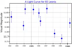 - ↑ Weis, Edward W. (March 1994). "Long Term Variability in Dwarf M Stars". The Astronomical Journal. 107 (3): 1135–1140. Bibcode:1994AJ....107.1135W. doi:10.1086/116925. Retrieved 19 January 2022.