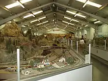 The 10,000 square foot exhibit includes O scale, HO scale and N scale models, replicating many California railroading locations.[3][4][5][6]