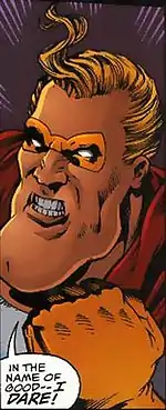 Goldstar was generally depicted as an antithesis to Lobo - kind, decent, clean-cut and generally a stick in the mud (as far as Lobo was concerned). All that Goldstar wished to do was encourage niceness, decency and heroism in the universe. For this, he is routinely beaten and brutalized by Lobo.