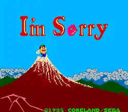 I'm Sorry, known in Japan as Gombe's I'm Sorry (ごんべえのあいむそ〜り〜, Gonbē no Aimusōrī), is a political satire arcade game developed by Coreland and published by Sega in 1985. This action game stars a caricature of former Prime Minister of Japan Kakuei Tanaka. The title is actually a play on the Japanese word for Prime Minister, Sōri (総理).[2] I'm Sorry was made after the Lockheed bribery scandals, and satirizes Tanaka's greed by making the goal of the game acquiring gold bars.[2] Despite the game's context in Japanese politics, I'm Sorry was localized to United States arcades.