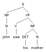 Consider the sentence "Johni saw hisi mother", which is diagrammed below using simple phrase structure trees.