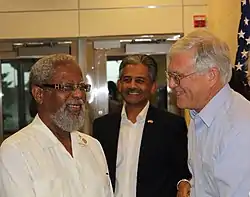![]() Governor-General Sir Colville Young (left) attending a diplomatic function at US Embassy Belize, 2011 | |