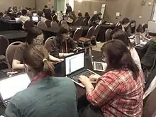 Group collaborating on Wikimedia projects at Grace Hopper Open Source Day