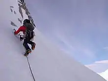 The WI-grade is for "hard ice"; steep snow slopes, which are encountered frequently on alpine climbing routes, are not explicitly graded but instead, their steepest angle (approximate figure or a range) is quoted (e.g. 60–70 degree slope).[24][25] WI-grade is for "seasonal" hard ice; an AI prefix is used instead for "alpine ice", which is year-round and usually firmer, more stable, making AI-grade routes slightly easier than WI routes.[24][25]