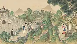The Daguanyuan (simplified Chinese: 大观园; traditional Chinese: 大觀園; pinyin: Dàguānyuán), variously translated as the Grand View Garden, Prospect Garden or Grand Prospect Garden, is a massive landscaped interior garden in the classic 18th century Chinese novel Dream of the Red Chamber, built within the compounds of the Rongguo Mansion. It is the setting for much of the story.[1]