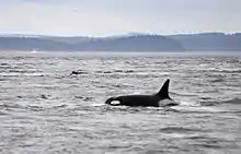 Granny (born c. 1936-1951 approx, died c. 2016), also known as J2, was a female orca of the J pod of southern resident orcas notable for her long life. Early estimates placed her birth in 1911, putting her at 105 years old at the time of her death. However, this estimate was later theorized to have been based on mistaken information and more recent studies put her at 65–80 years old.[1][2][3] If she was 105, she would have been the oldest known orca at the time of her death.[4][5][6][7] Granny lived in the northeast Pacific Ocean and coastal bays of Washington state and British Columbia. She was last seen on October 12, 2016, and was considered deceased by The Center for Whale Research in January 2017.[8][2]