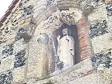 The site of Great Ellingham has been inhabited since pre-historic times and is documented in the Domesday book of 1086. Its name comes from the Old English for 'The homestead of Ella's or Eli's people'.[4] The medieval period provides the oldest surviving, mainly 14th century, building of St James the Great's Church, [5] in the Benefice of Great Ellingham.[6] This "attractive chequered flintwork and battlemented west tower [is] topped by a lead spire" was restored in the early 20th century.[7] The spire can be viewed from some distance away as the village is approached on the Attleborough road.