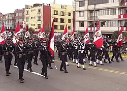 The historical segment leads the marchpast in quick time of the Peruvian Armed Forces (in several occasions several units marched in double time on the parade). In recent years however foreign contingents have led the parade together with reserve and indigenous military units and alumni from the Leoncio Prado Military Academy.