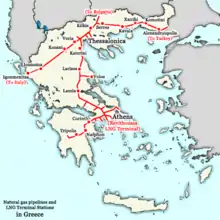 Greece–Italy pipeline. A map showing the approximate locations of natural gas pipelines through Greece to Italy