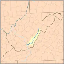 The Greenbrier River is a tributary of the New River, 162 miles (261 km) long,[2] in southeastern West Virginia, in the United States. Via the New, Kanawha and Ohio rivers, it is part of the watershed of the Mississippi River, draining an area of 1,656 square miles (4,290 km2).[2] It is one of the longest rivers in West Virginia.[4]