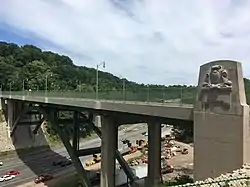 The Greenfield Bridge, officially known as the Beechwood Boulevard (Greenfield) Bridge II, is a steel arch bridge located in Pittsburgh, Pennsylvania, United States.[3] The bridge connects the neighborhoods of Greenfield and Squirrel Hill (specifically Schenley Park)[4] across the valley known as Four Mile Run which separates them. The bridge also spans the Parkway East (I-376), which runs along the bottom of the valley.