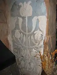In 1979, June Hallett – the wife of the then-owner of the farm, uncovered plaster of paris frescoes on the inner walls of a fireplace in the house. The images were consequentially restored, and are believed to be the earliest known depictions of Californian Poppies. The frescoes are estimated to have been made between 1580 and 1585, immediately following Sir Francis Drake's return from his circumnavigation of the globe.