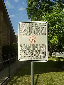 - ↑ "TEX PE. CODE § 30.06 : Section 30.06: TRESPASS BY LICENSE HOLDER WITH A CONCEALED HANDGUN". www.statutes.legis.state.tx.us. January 1, 2016. Retrieved January 25, 2016.