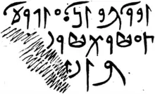 The name of Gurzil may be detected elsewhere in the toponymy of Tripolitania.[1] A temple among the ruins of Gerisa (Ghirza) in Libya may have been dedicated to Gurzil, and the name of the town itself may even be related to his name.[4] According to the 9th-century Muslim writer al-Bakrī, there was a place called Gherza in Tripolitania with a hilltop sanctuary containing a stone idol that the Berber tribes from the surrounding region still worshipped.[1]
