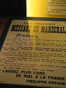 Guy Môquet was arrested in 1940 distributing propaganda against the war. This policy reversed after resistance appeared as the only way to fight Nazism directly inside France, and after resistance movements started gaining strength (about the same time as Charles de Gaulle's appeal of 18 June 1940). The Communist party offered itself as the leader of French resistance to German occupation and internal French Nazi forces. Môquet was one of those thus celebrated, not least because of his now famous last letter before his execution. This ideal was embraced in France for several decades after the war. The PCF is commonly referred to as the "party of the 75,000 executed people". A street and a Métro station in Paris were named after him in 1946. Many other place names across France also bear his name and Châteaubriant dedicated a high school to him.