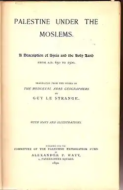 Guy Le Strange (24 July 1854 – 24 December 1933) was a British Orientalist noted especially for his work in the field of the historical geography of the pre-modern Middle Eastern and Eastern Islamic lands, and his editing of Persian geographical texts.[1] He was a scholar of the Persian, Arabic, and Spanish languages.