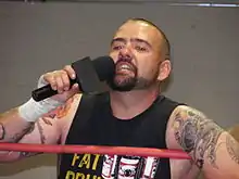 Knowles debuted on the inaugural ROH show, Era of Honor Begins, on February 23, 2002 as a referee.[2] On April 27, Knowles formed a tag team with his longtime friend DeVito known as the Carnage Crew.[1] The Carnage Crew was later expanded to include Masada and then again to include Justin Credible. Credible left ROH in 2004, while Masada turned against Knowles and DeVito on May 22, 2004. After briefly feuding with Special K, the Carnage Crew began feuding Dan Maff and B. J. Whitmer. After Maff left ROH, they began feuding with Whitmer and his new partner Jimmy Jacobs. On July 9, 2005, The Carnage Crew defeated Whitmer and Jacobs for the Tag Team Championship.[5] Only a few weeks later at The Hoemcoming, the Carnage Crew re-lost the title to Whitmer and Jacobs on July 23.[5] On August 20 at Night of the Grudges II, the Carnage Crew wrestled their final match in ROH and lost to The Ring Crew Express.[6] After leaving ROH, Knowles took a hiatus from wrestling.