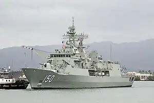 ![]() HMAS Anzac arriving at Naval Station Pearl Harbor, prior to participating in RIMPAC 2008. | |
