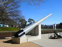 One of the cruiser's 8-inch gun barrels is on display outside the Australian War Memorial. A memorial to the ship's company, particularly those killed during World War II, was unveiled at Henley Beach, South Australia on 1 May 2011.[143]
