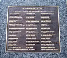 HMS Affray was a British Amphion-class submarine. It was the last Royal Navy submarine to be lost at sea, on 16 April 1951, with the loss of 75 lives.[1]