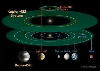 - ↑ Boyle, Alan. "A Place for Alien Life? Kepler Mission Discovers Earth's Older Cousin, Kepler-452b". Universe Today.