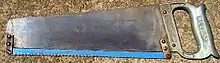 A hacksaw is a fine-toothed saw, originally and mainly made for cutting metal. The equivalent saw for cutting wood is usually called a bow saw.