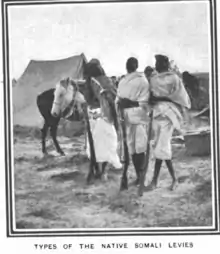 By December 1900, 21 officers of the British and Indian army with a force of 1,500 Somali Levy from the raiding tribes were ready to operate against the dervish in 1901.[37] To prevent the Dervish from fleeing west across the Ethiopian border, Ethiopian cooperation was sought and the Abyssinian king sent a force of 8,000 soldiers in January 1901, the Ethiopian operations began at once, three months before the British expeditions, the Ethiopians managed to push the dervish across the Somaliland border and punish the clans who were involved in assisting the dervish.