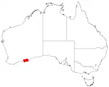 Hakea bicornata is found in coastal areas along the south coast Goldfields-Esperance region of Western Australia between Esperance and Cape Arid National Park in lateritic sandy-loamy soils over granite[4] as part of shrub-land communities.[3]
