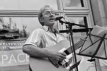 Since 2009 he has been performing on and off at venues around Switzerland as a solo singer and guitarist – and sometimes together with Werner Meier (violin), Jürg Surber (double bass), and Jens Weber (tenor).[47] Under the Robert Burns motto "For A'That", he considers it his mission to keep alive all kinds of political songs (work-songs, revolutionary songs, protest songs, songs of resistance).[48]